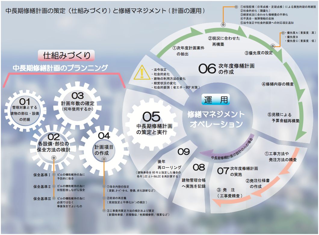 - 保全に関する考え方の構築(予防基準、修繕周期の設定)